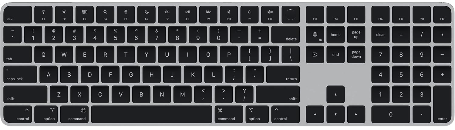 Клавиатура Apple Magic Keyboard с Touch ID – это беспроводная модель, которая обеспечивает максимальный комфорт при наборе текста. Одной из ключевых ее особенностей является встроенный датчик Touch ID, позволяющий быстро и безопасно авторизоваться на различных веб-сайтах и осуществлять покупки. Клавиши, выполненные по технологии ножничного механизма, обеспечивают тихое нажатие и плавный ход.