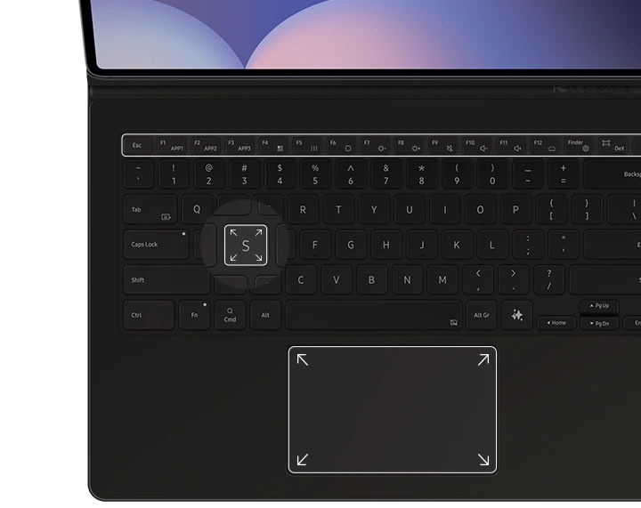Работа в режиме, подобном настольному ПК, становится невероятно удобной благодаря чехлу-клавиатуре Book Cover Keyboard. С её помощью вы можете использовать планшет Galaxy Tab S10+, Tab S9+, Tab S9 FE+ как полноценный компьютер. Обладая регулируемой подсветкой, функциональными клавишами и сенсорной панелью, этот чехол позволяет легко управлять приложениями, а функцию DeX делает работу ещё более эффективной. Вы сможете быстро запускать любимые приложения, настраивая три клавиши для быстрого доступа.