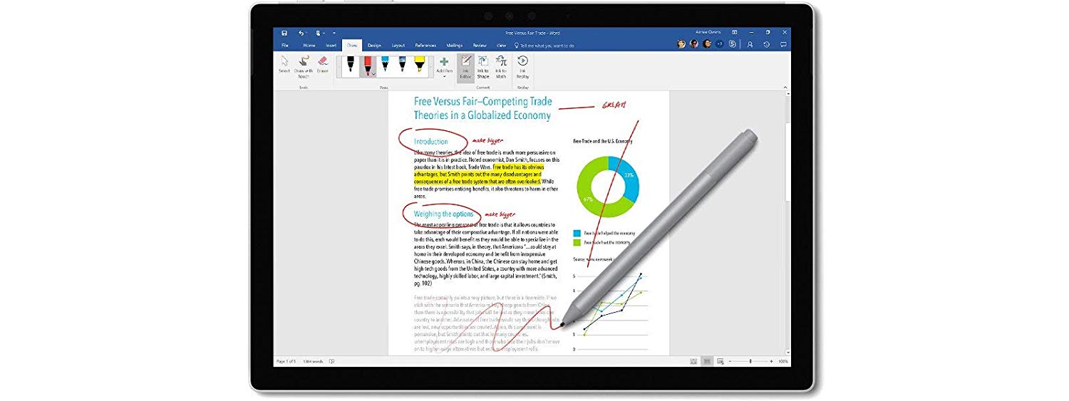 Раскройте потенциал Surface Pen в Windows и пакете приложений Office: зачеркивайте слова и с легкостью удаляйте их, выделяйте нужные фразы, подчеркивайте, копируйте и вставляйте - работайте с текстом с максимальным удобством.